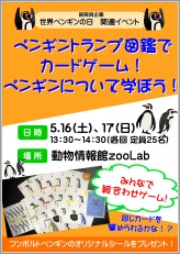 福岡市動物園では、ペンギンについてのクイズやカードゲームを通して、ペンギンを取り巻く問題について知ってもらうことを目的として、「ペンギントランプ図鑑でカードゲーム!ペンギンについて学ぼう!」を開催します。イベントでは、参加してくれた方にフンボルトペンギンのオリジナルシールを配布予定です。